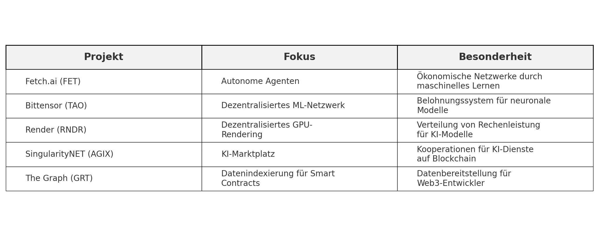 Abbildung 1: Führende KI‑Coins 2025 – Fokus & Highlights.